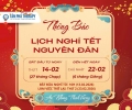 Thời gian nghỉ: - Từ ngày 14/02/2026 - NGÀY 27 THÁNG CHẠP (Ngày 13/02/2026 làm việc đến hết 16h). - Thời gian làm việc trở lại: 7h00 ngày 23/02/2026 (MÙNG 7 TẾT BÍNH NGỌ).